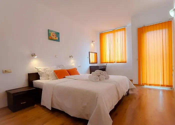 The quality 3-star Sunny Holiday Apartments Nesebar hotel is just 1.1 km from Cacao Beach and has a swimming pool plus an aquapark. Thanks to its quiet location, this Nesebar aparthotel stands around a 15-minute ride from Dinevi Marina, which is a great place to have a fun time.